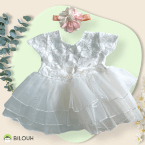 Vestido pañalero de tul suave con bordado