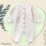 Mono blanco de tela suave con diseño de cuadros, ideal para invierno. Mantendrá a tu bebé calientito