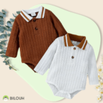 Pañaleros de niño en cuello v en manga larga. La tela es suave y tiene textura ideal para eventos formales