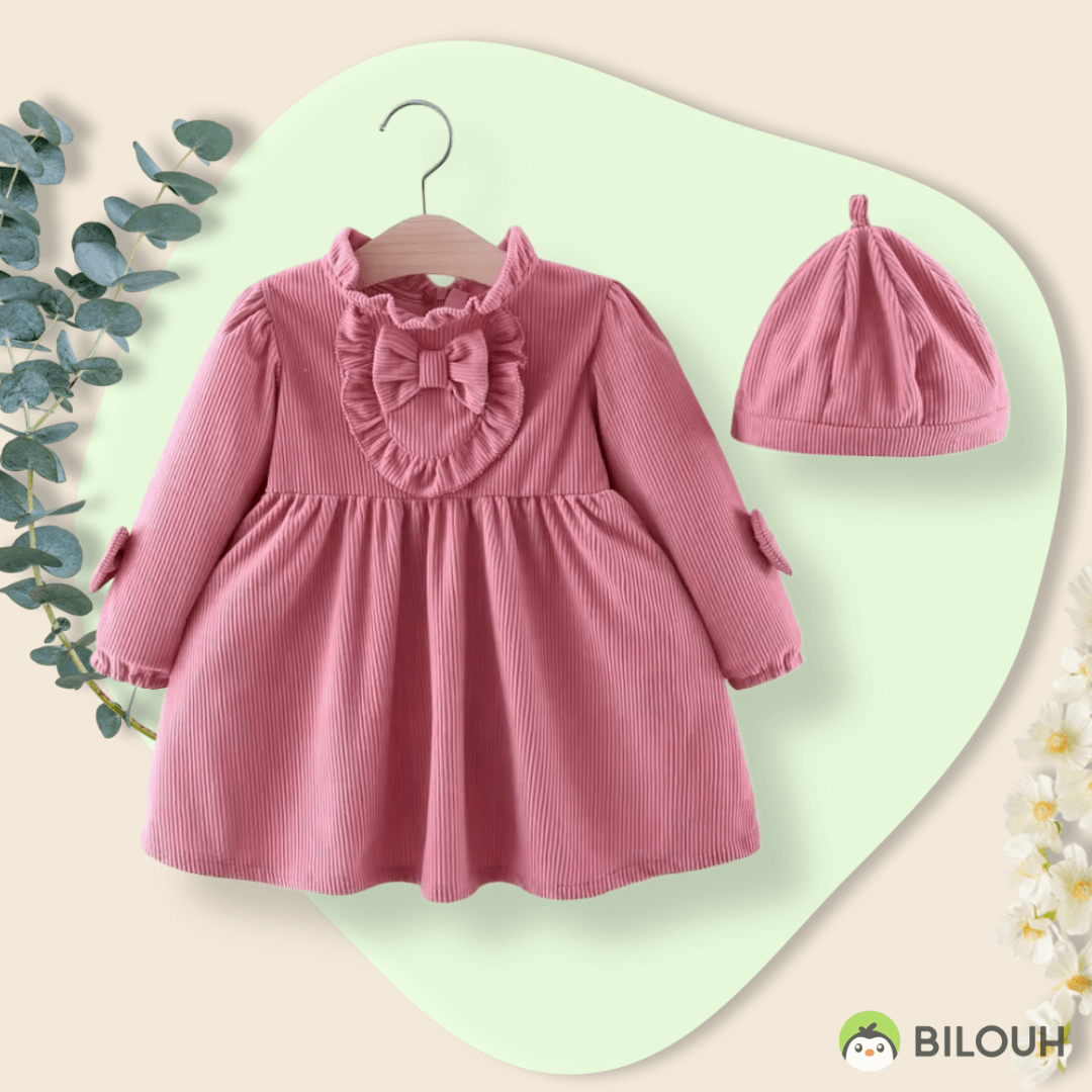 Vestido de pana en manga larga y boina, es ideal para eventos casuales. Perfecto para un outfit casual
