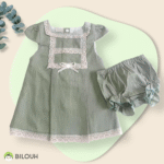 Vestido corte español, de manga corta con calzoncillo a juego, textura suave, parecida a la tela ligera de lino