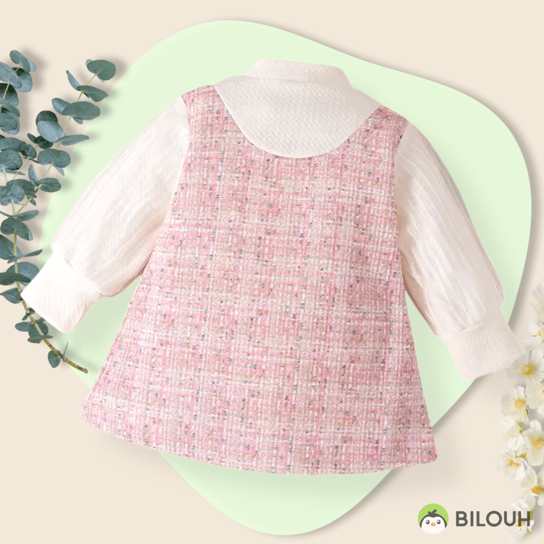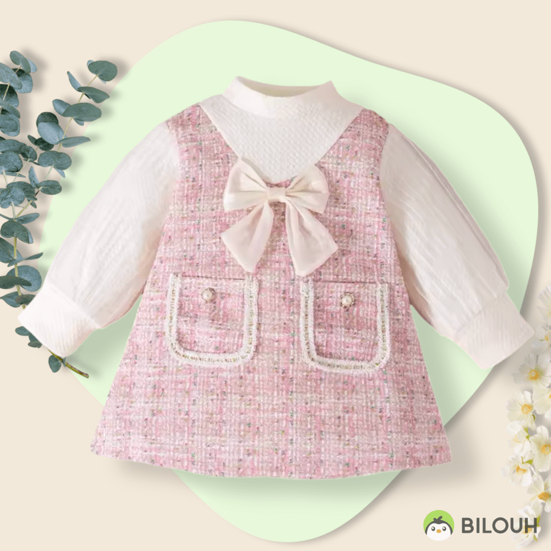 Vestido elegante manga larga rosa pastel
