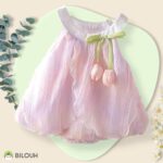Tú bebé en la moda verano – casual acompañado de este hermoso Pañalero tipo vestido con adorables toques de tulipanes