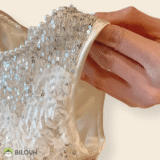 Vestido de hojuelas brillantes con falda de volumen, es un vestido princesa ideal para un evento formal