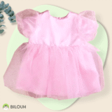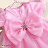 Vestido rosa, de bebé recién nacida, con manga estilo burbuja ideal para que tu bebe este comida pero a la vez sea elegante